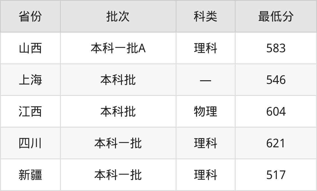 东华大学能源与环境系统工程专业在全国各省最低录取分数线为517分(新疆理科),除此之外,在其余地区的最低分为山西理科583分、上海546分、江西物理类604分、四川理科621分等,以上数据均为2024年数据,供2025年高考生参考。