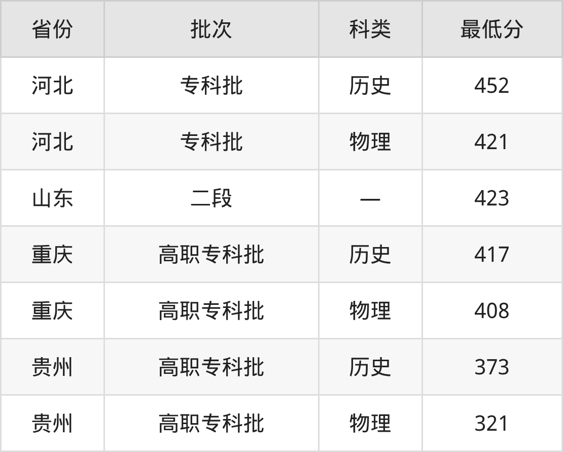 常德职业技术学院护理专业在全国各省最低录取分数线为321分(贵州物理类),除此之外,在其余地区的最低分为山东423分、重庆物理类408分、河北物理类421分,以上数据均为2025年数据,供2026年高考生参考。