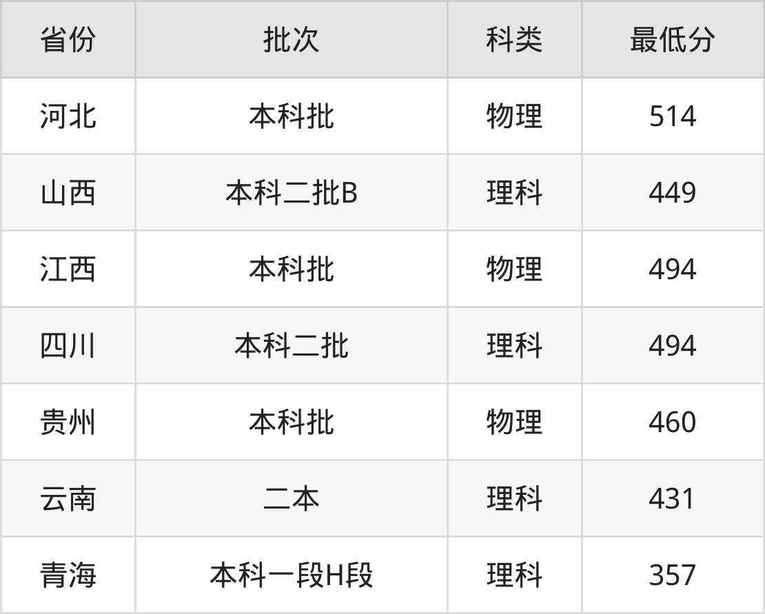 琼台师范学院财务管理专业在全国各省最低录取分数线为357分(青海理科),除此之外,在其余地区的最低分为江西物理类494分、四川理科494分、贵州物理类460分、云南理科431分等,以上数据均为2024年数据,供2025年高考生参考。