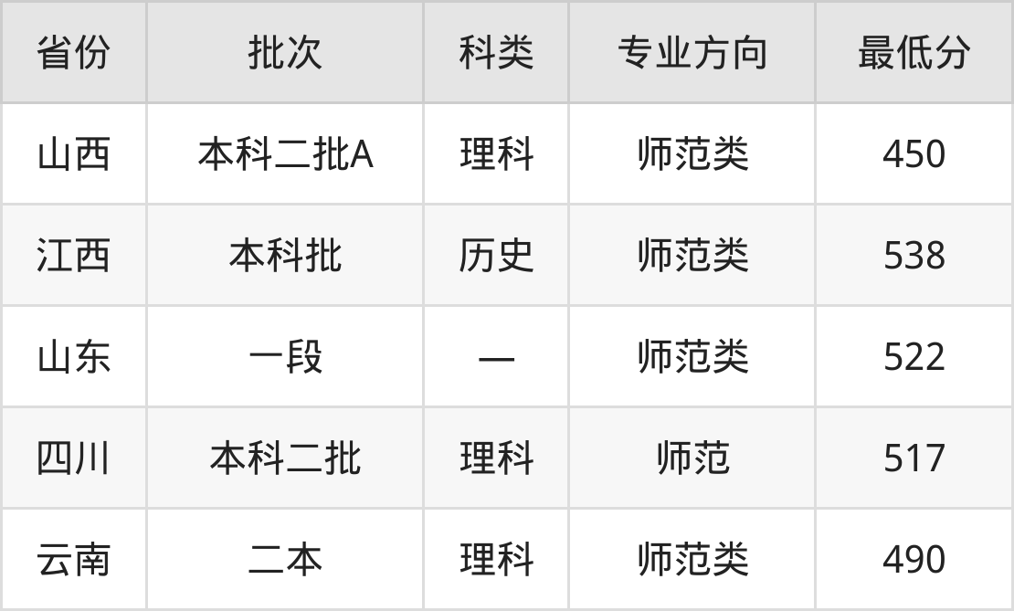 广西民族大学应用心理学专业录取分数线从450分到538分不等,最低分数线如下:
