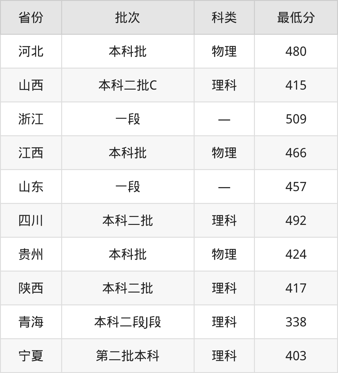西安交通工程学院电气工程及其自动化专业录取分数线从338分到509分不等,最低分数线如下: