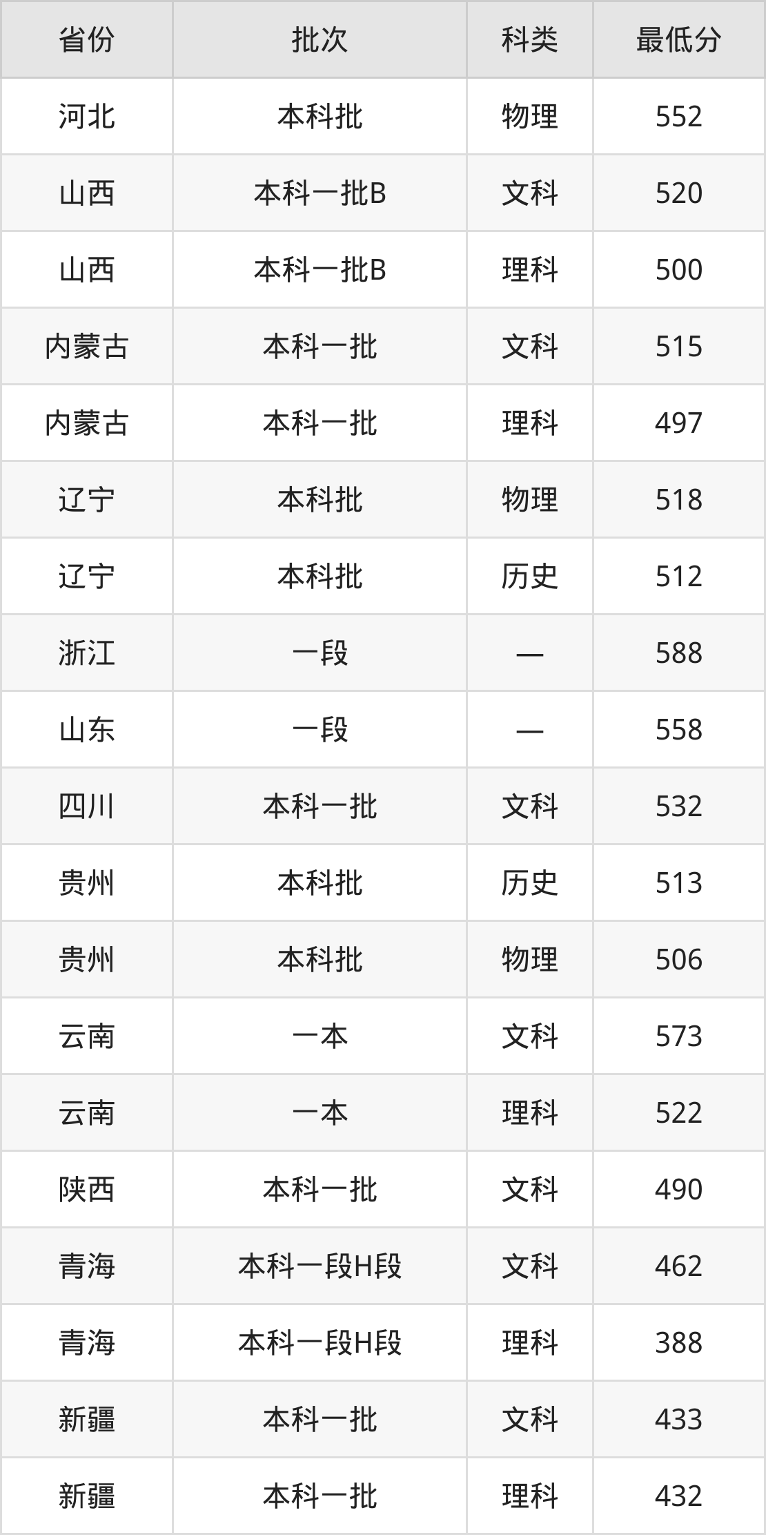 大连外国语大学法语专业录取分数线从388分到588分不等,在部分地区的最低分数线如下: