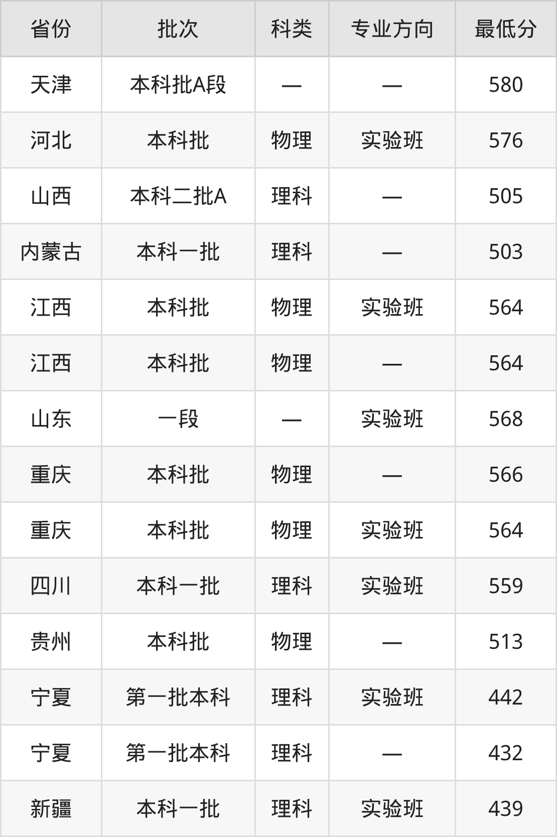 北京物资学院计算机科学与技术专业录取分数线从432分到580分不等,在部分地区的最低分数线如下: