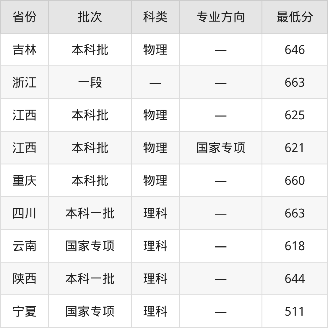 华中科技大学化学类专业在全国各省最低录取分数线为511分(宁夏理科),除此之外,在其余地区的最低分为重庆物理类660分、四川理科663分、云南理科618分、陕西理科644分等,以上数据均为2024年数据,供2025年高考生参考。