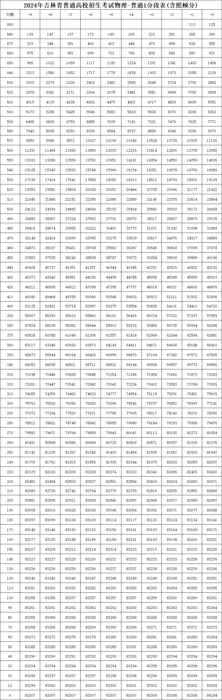 二、2024吉林高考物理类一分一段表