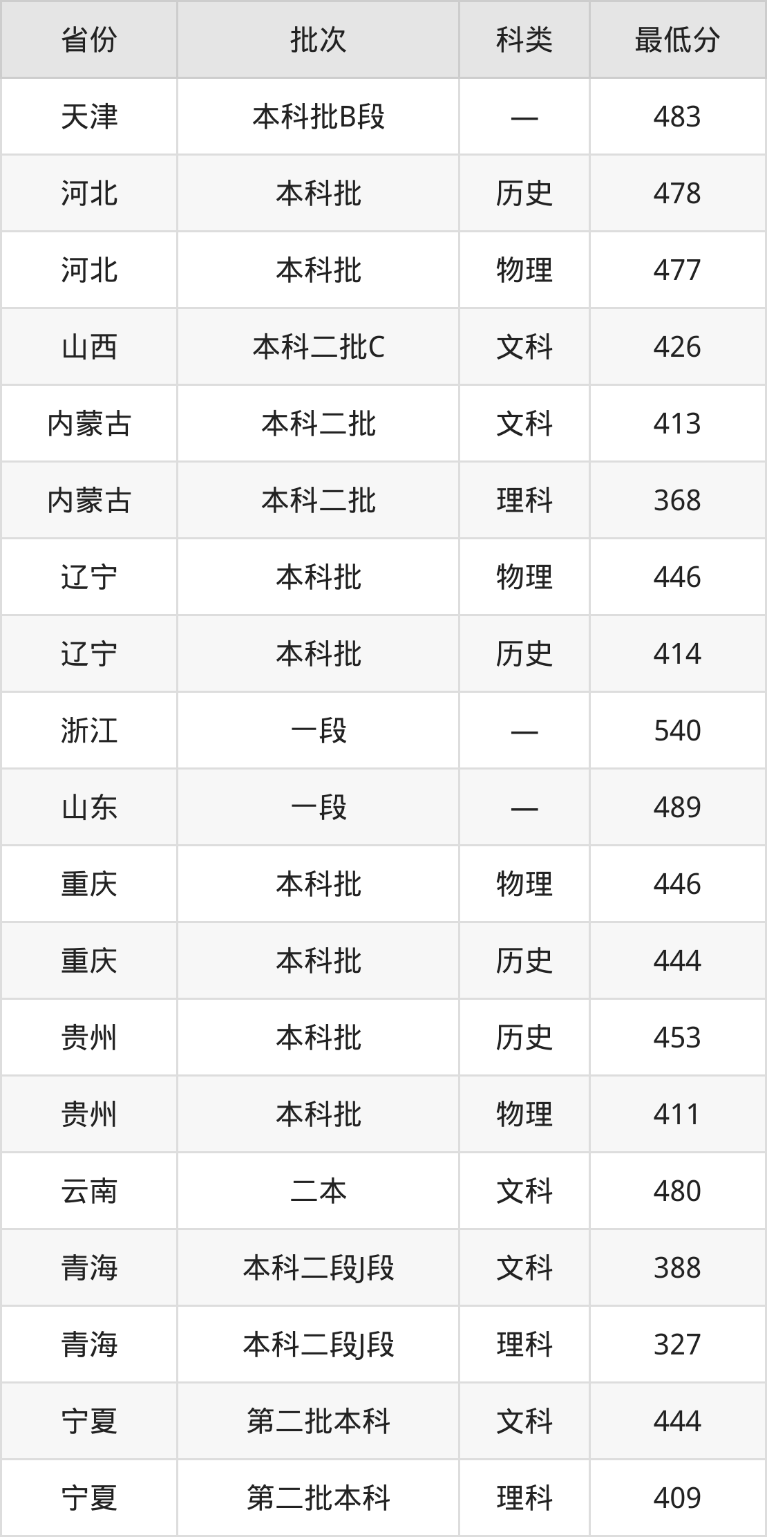 青岛黄海学院财务管理专业录取分数线从327分到540分不等,在部分地区的最低分数线如下: