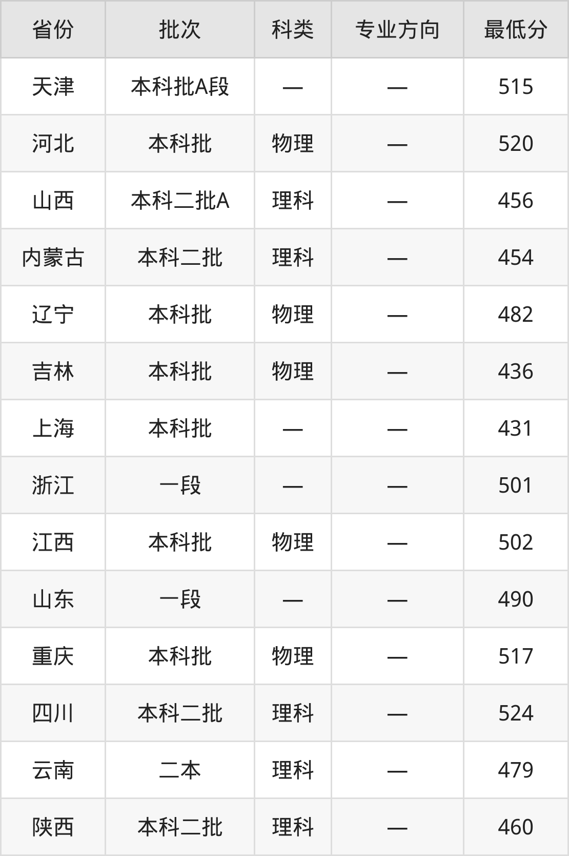 山西农业大学生物科学类专业录取分数线从431分到524分不等,在部分地区的最低分数线如下: