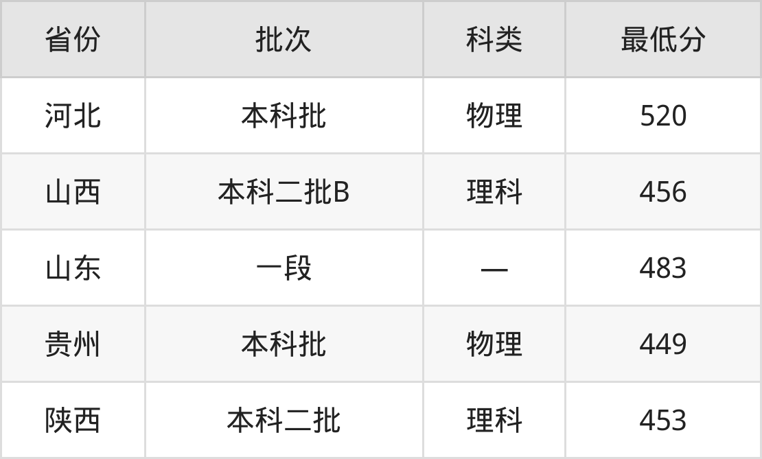 泰山学院数据科学与大数据技术专业在全国各省最低录取分数线为449分(贵州物理类),除此之外,在其余地区的最低分为山西理科456分、山东483分、陕西理科453分、河北物理类520分,以上数据均为2024年数据,供2025年高考生参考。