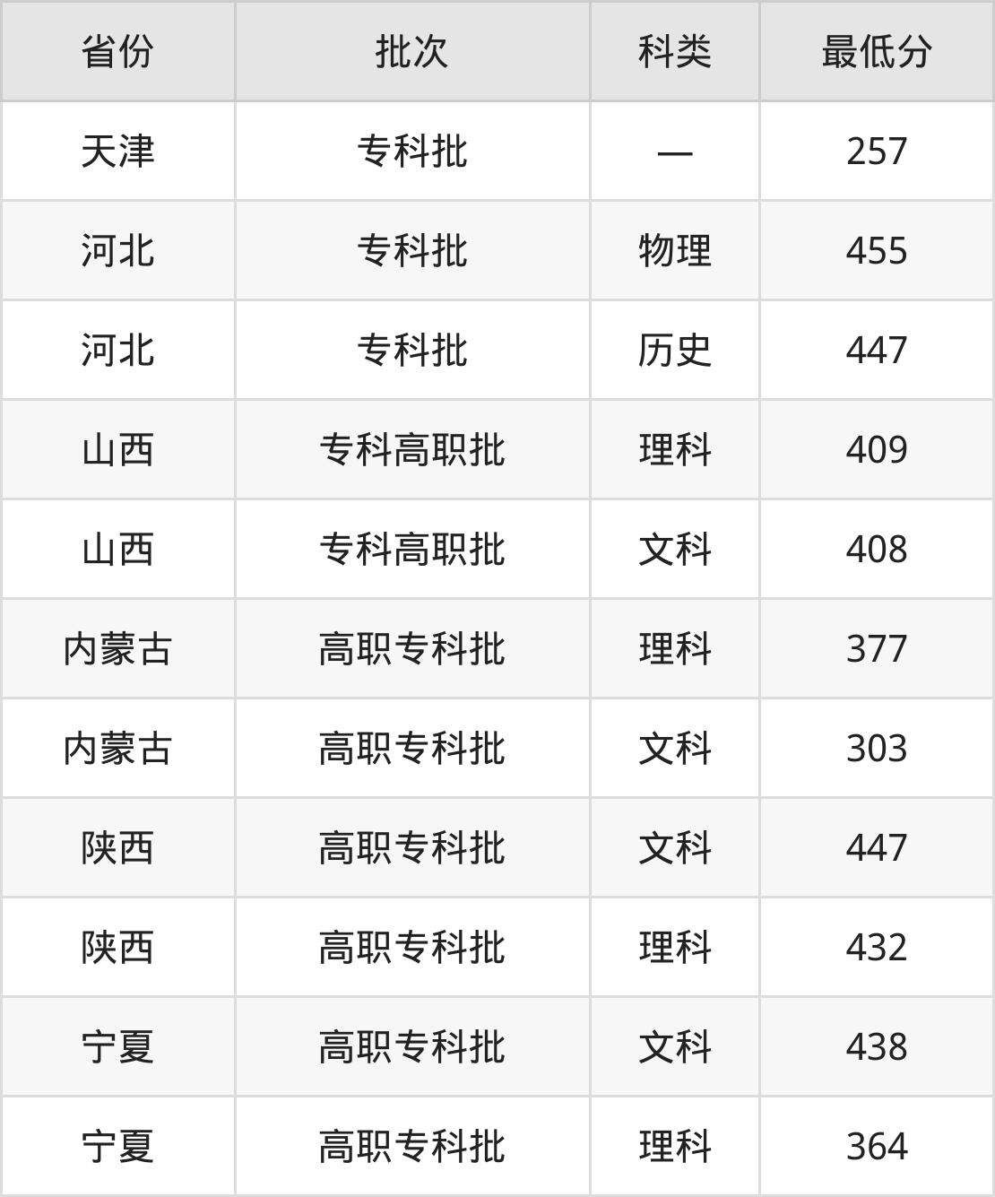 张家口学院临床医学专业录取分数线从257分到455分不等,最低分数线如下: