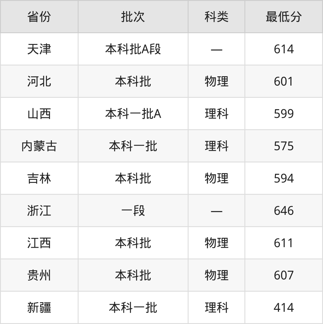 暨南大学应用物理学专业在全国各省最低录取分数线为414分(新疆理科),除此之外,在其余地区的最低分为天津614分、内蒙古理科575分、吉林物理类594分、浙江646分等,以上数据均为2024年数据,供2025年高考生参考。