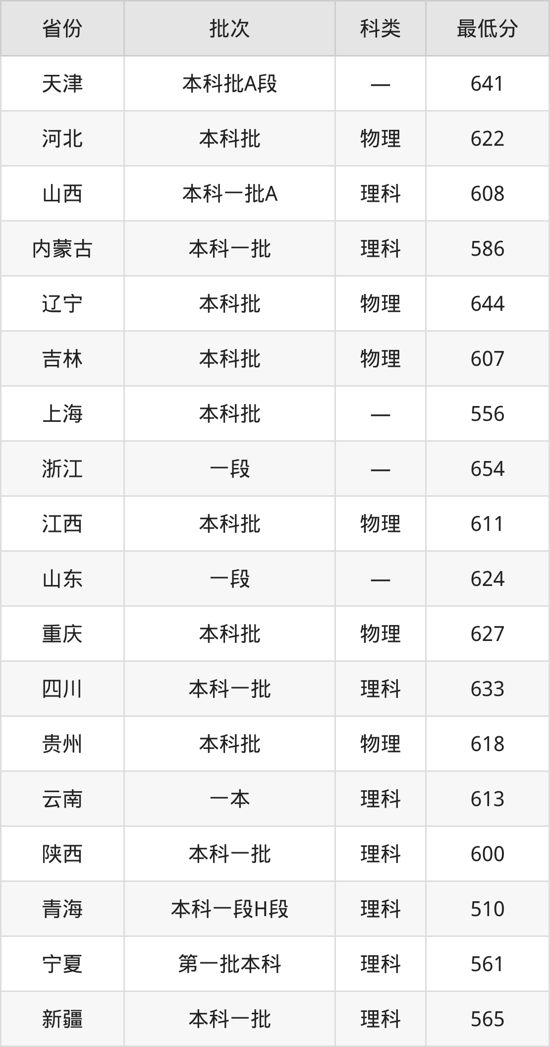 华北电力大学氢能科学与工程专业录取分数线从510分到654分不等,在部分地区的最低分数线如下: