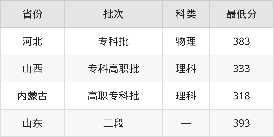 西安外事学院汽车制造与试验技术专业录取分数线从318分到393分不等,最低分数线如下: