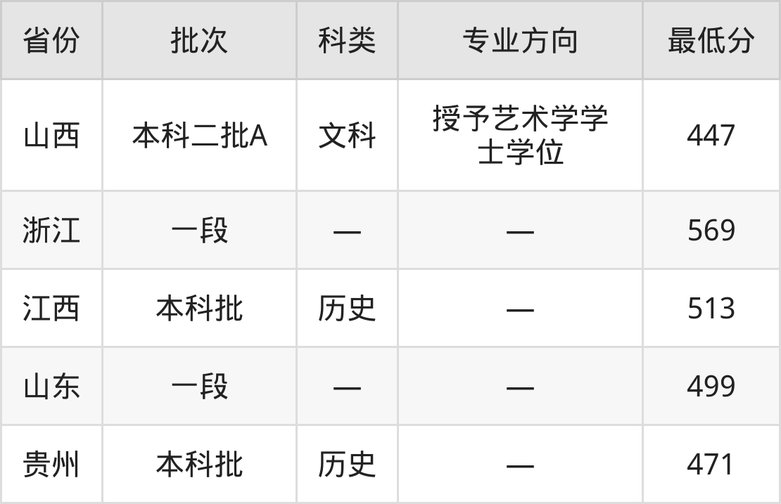 淮阴师范学院广播电视编导专业在全国各省最低录取分数线为447分(山西文科),除此之外,在其余地区的最低分为浙江569分、江西历史类513分、山东499分、贵州历史类471分,以上数据均为2024年数据,供2025年高考生参考。