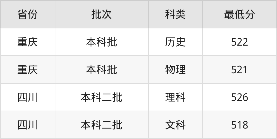 西南医科大学公共事业管理专业录取分数线从518分到526分不等,最低分数线如下: