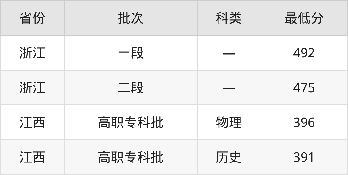 江西司法警官职业学院信息安全技术应用专业在全国各省最低录取分数线为391分(江西历史类),除此之外,在其余地区的最低分为浙江475分,以上数据均为2024年数据,供2025年高考生参考。