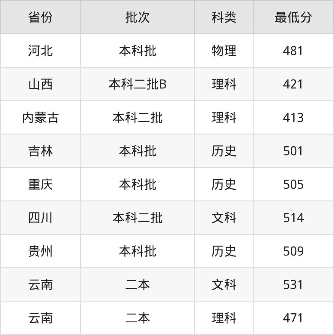 内蒙古:理科最低413分