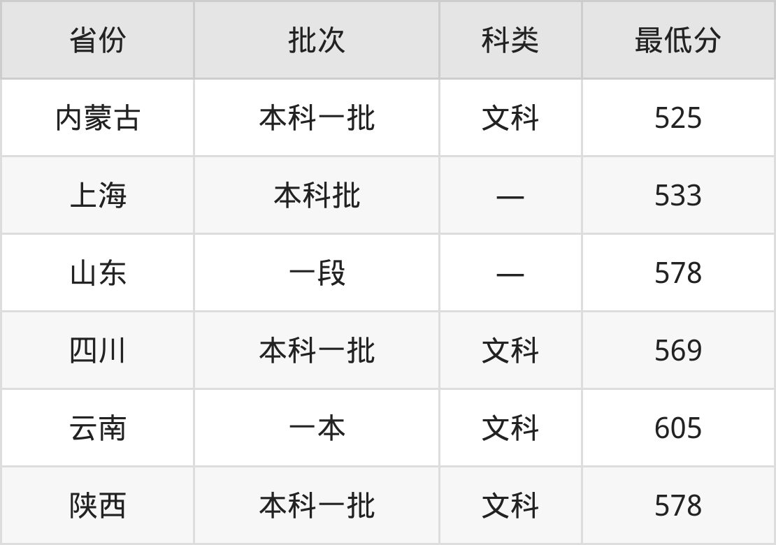 云南:文科最低605分