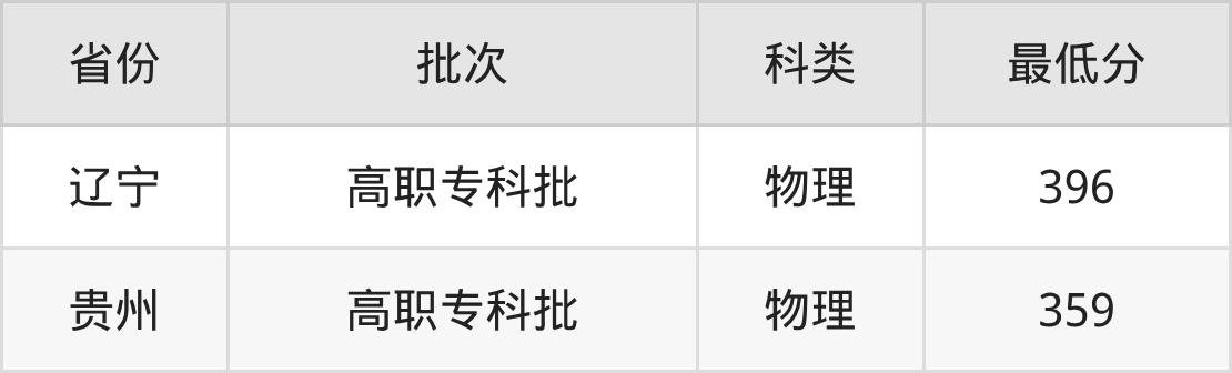 贵州航空职业技术学院机电一体化技术专业录取分数线从359分到396分不等,最低分数线如下: