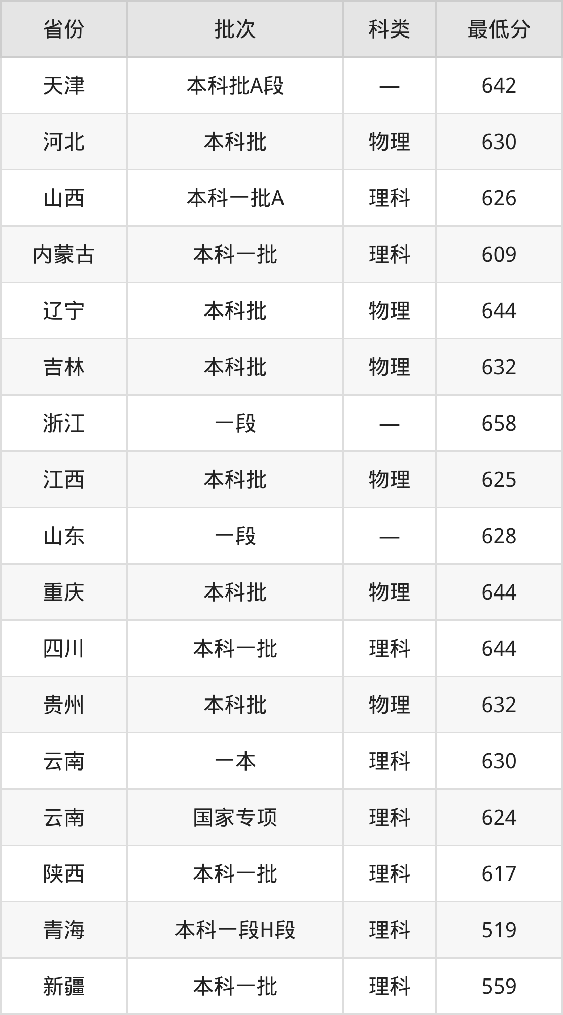 东北大学计算机科学与技术专业录取分数线从519分到658分不等,在部分地区的最低分数线如下: