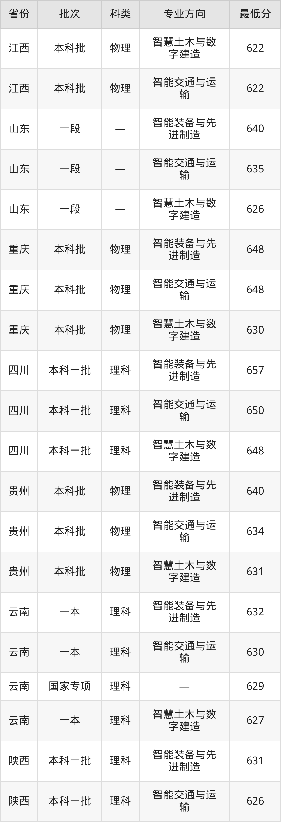 华南理工大学工科试验班专业在全国各省录取分数线: