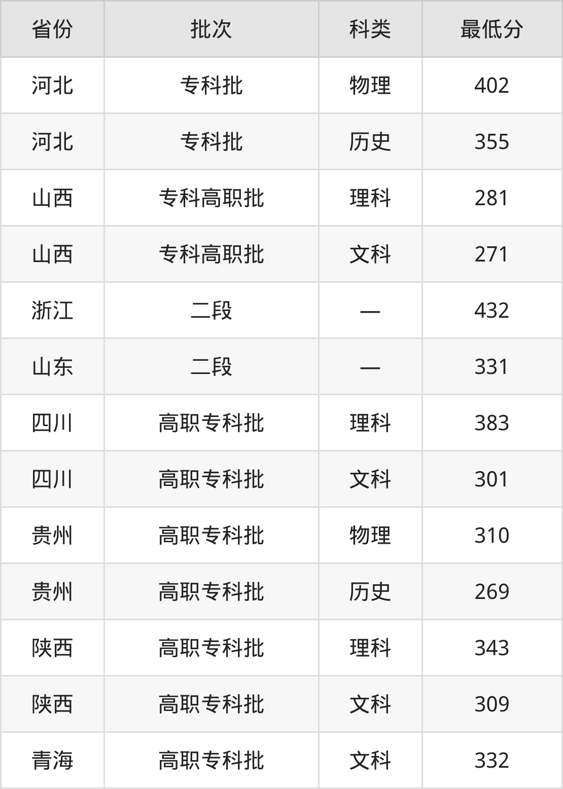 四川:理科最低383分、文科最低301分