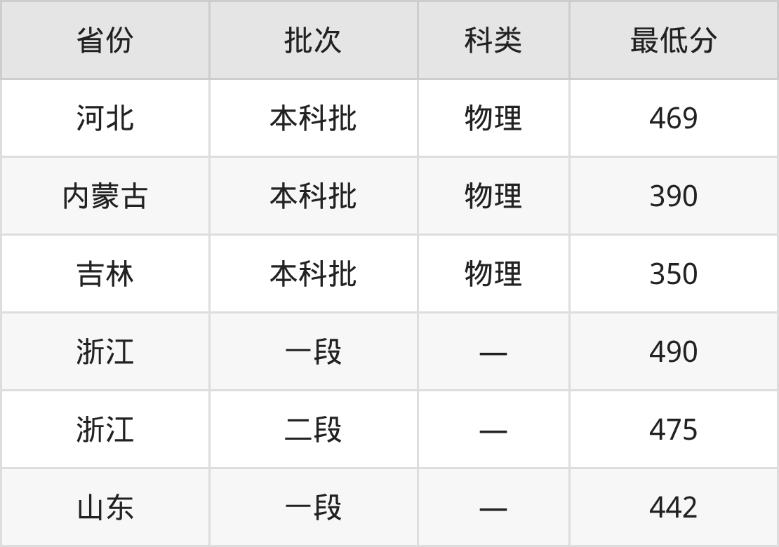 上海立达学院计算机科学与技术专业在全国各省最低录取分数线为350分(吉林物理类),除此之外,在其余地区的最低分为河北物理类469分、内蒙古物理类390分、浙江475分、山东442分,以上数据均为2025年数据,供2026年高考生参考。
