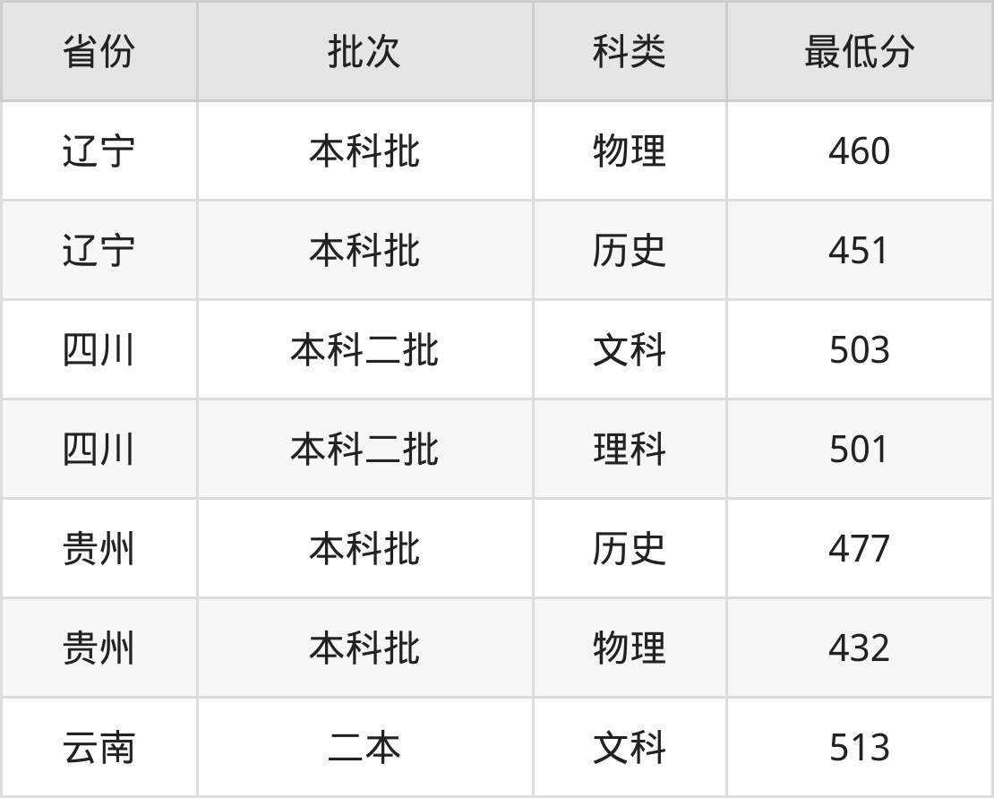 辽东学院旅游管理专业录取分数线从432分到513分不等,最低分数线如下: