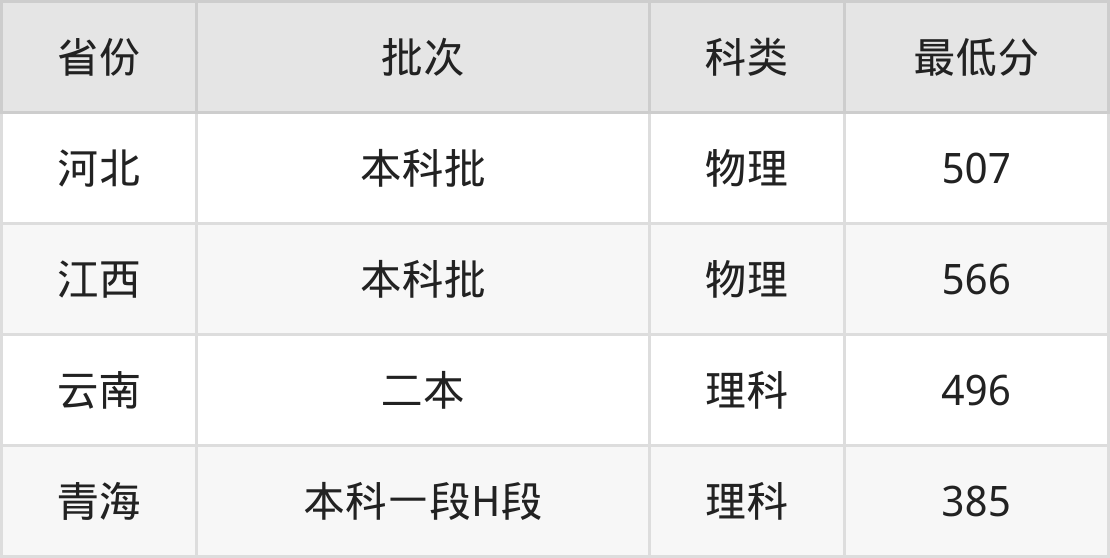 东莞理工学院土木工程专业在全国各省最低录取分数线为385分(青海理科),除此之外,在其余地区的最低分为江西物理类566分、云南理科496分、河北物理类507分,以上数据均为2024年数据,供2025年高考生参考。