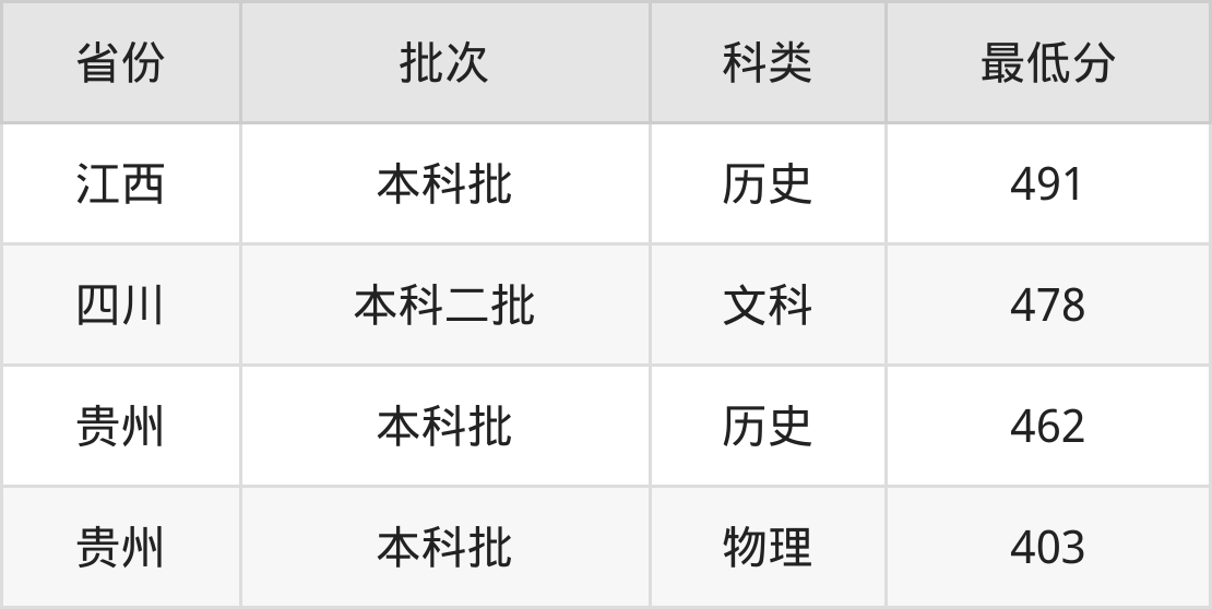 广东白云学院应用心理学专业在全国各省最低录取分数线为403分(贵州物理类),除此之外,在其余地区的最低分为江西历史类491分、四川文科478分,以上数据均为2024年数据,供2025年高考生参考。