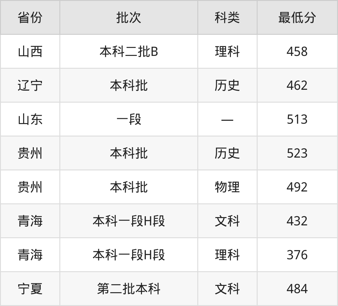 青海民族大学经济学专业录取分数线从376分到523分不等,最低分数线如下: