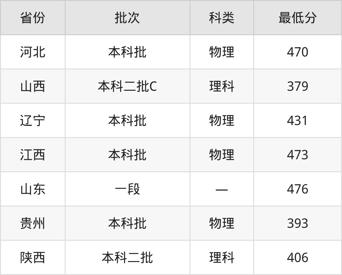 广州南方学院计算机科学与技术专业在全国各省最低录取分数线为379分(山西理科),除此之外,在其余地区的最低分为辽宁物理类431分、江西物理类473分、山东476分、贵州物理类393分等,以上数据均为2024年数据,供2025年高考生参考。