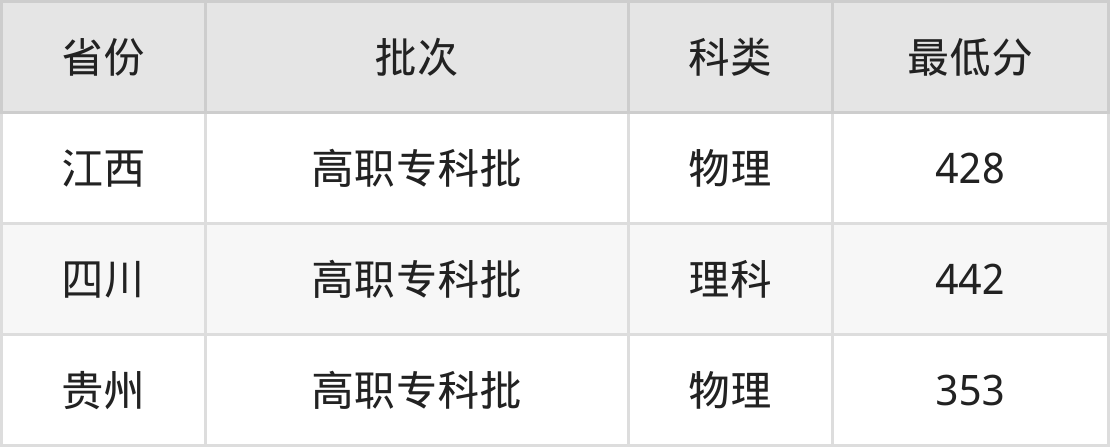 福建信息职业技术学院工业机器人技术专业在全国各省最低录取分数线为353分(贵州物理类),除此之外,在其余地区的最低分为江西物理类428分、四川理科442分,以上数据均为2024年数据,供2025年高考生参考。