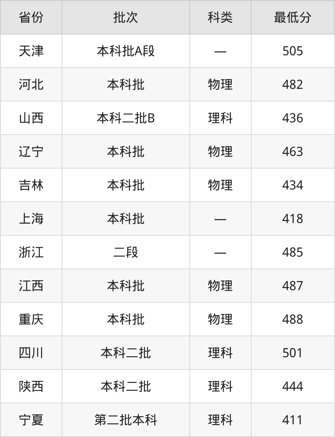 河北环境工程学院环境生态工程专业录取分数线从411分到505分不等,在部分地区的最低分数线如下: