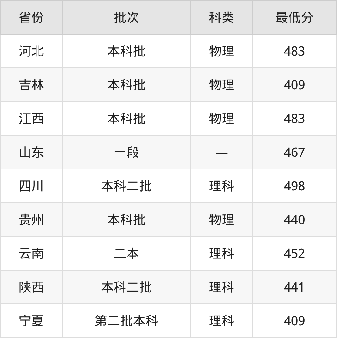 昌吉学院能源与动力工程专业在全国各省最低录取分数线为409分(吉林物理类),除此之外,在其余地区的最低分为山东467分、贵州物理类440分、河北物理类483分、江西物理类483分等,以上数据均为2024年数据,供2025年高考生参考。