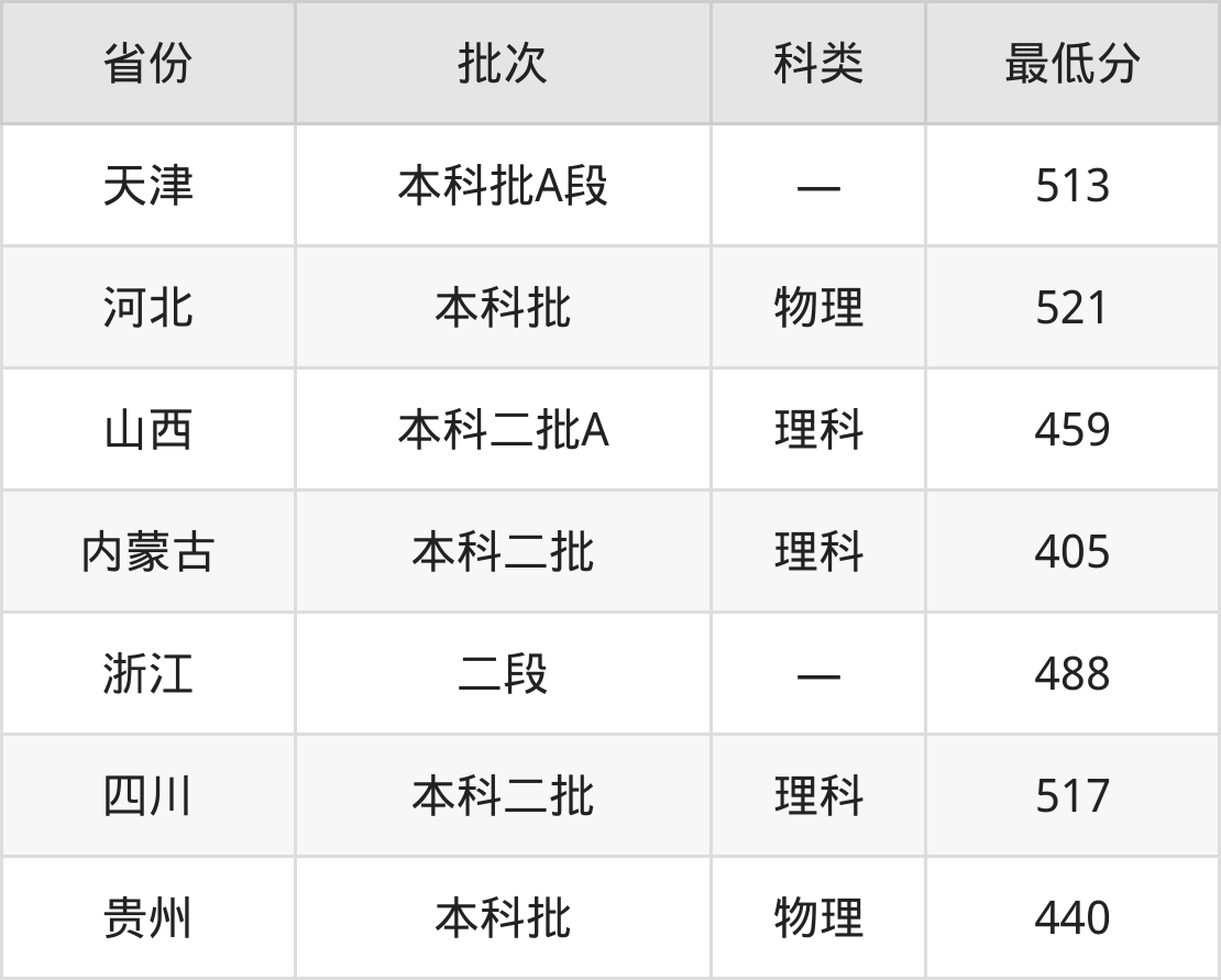 天津农学院生物技术专业在全国各省最低录取分数线为405分(内蒙古理科),除此之外,在其余地区的最低分为浙江488分、四川理科517分、贵州物理类440分、天津513分等,以上数据均为2024年数据,供2025年高考生参考。