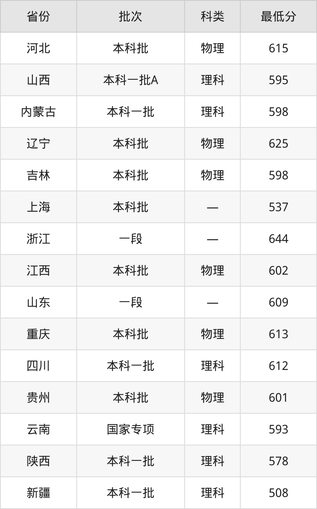 北京林业大学电气工程及其自动化专业录取分数线从508分到644分不等,在部分地区的最低分数线如下: