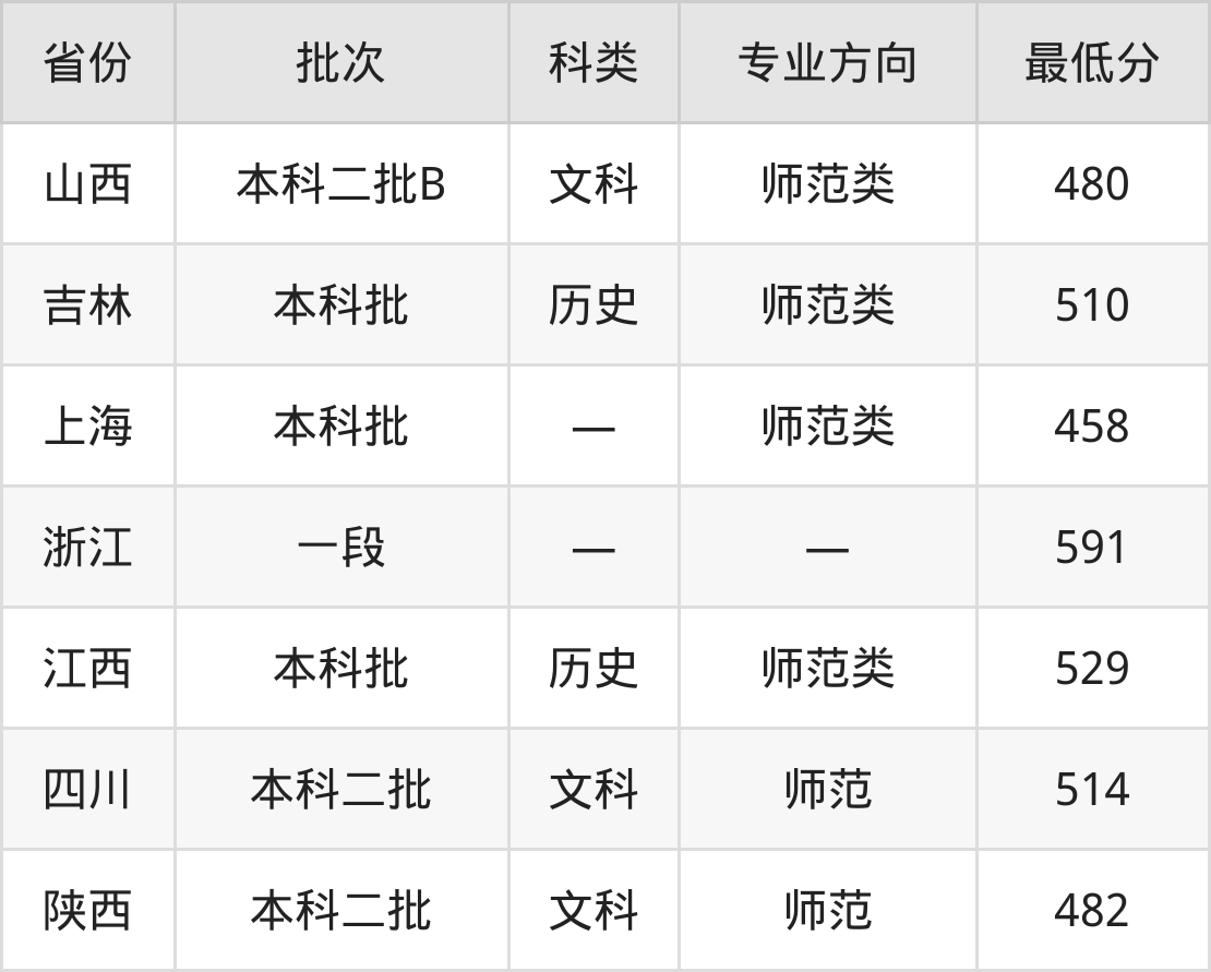 南京特殊教育师范学院汉语言文学专业在全国各省最低录取分数线为458分(上海),除此之外,在其余地区的最低分为江西历史类529分、四川文科514分、陕西文科482分、山西文科480分等,以上数据均为2024年数据,供2025年高考生参考。
