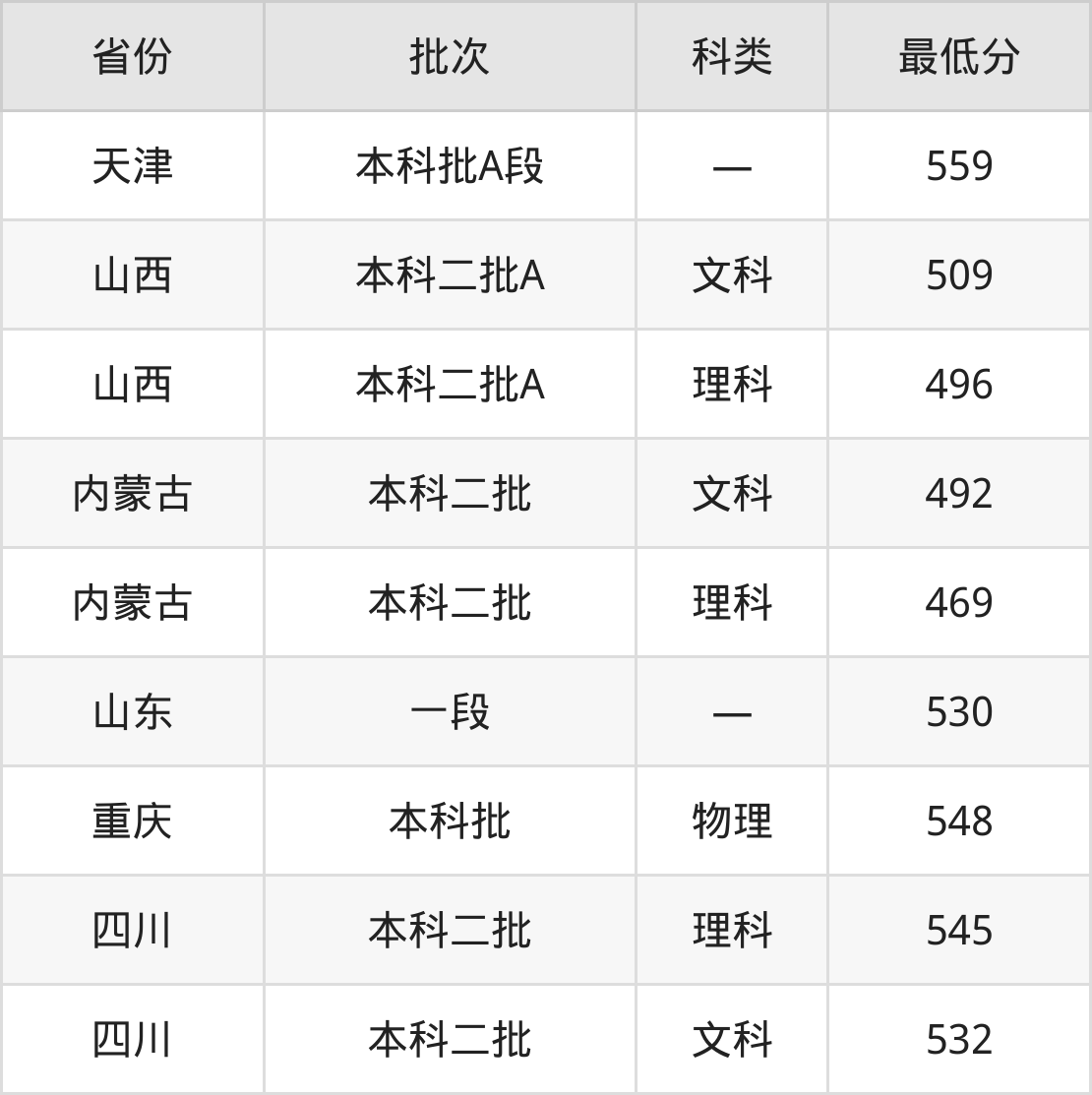 山西中医药大学中医养生学专业在全国各省录取分数线: