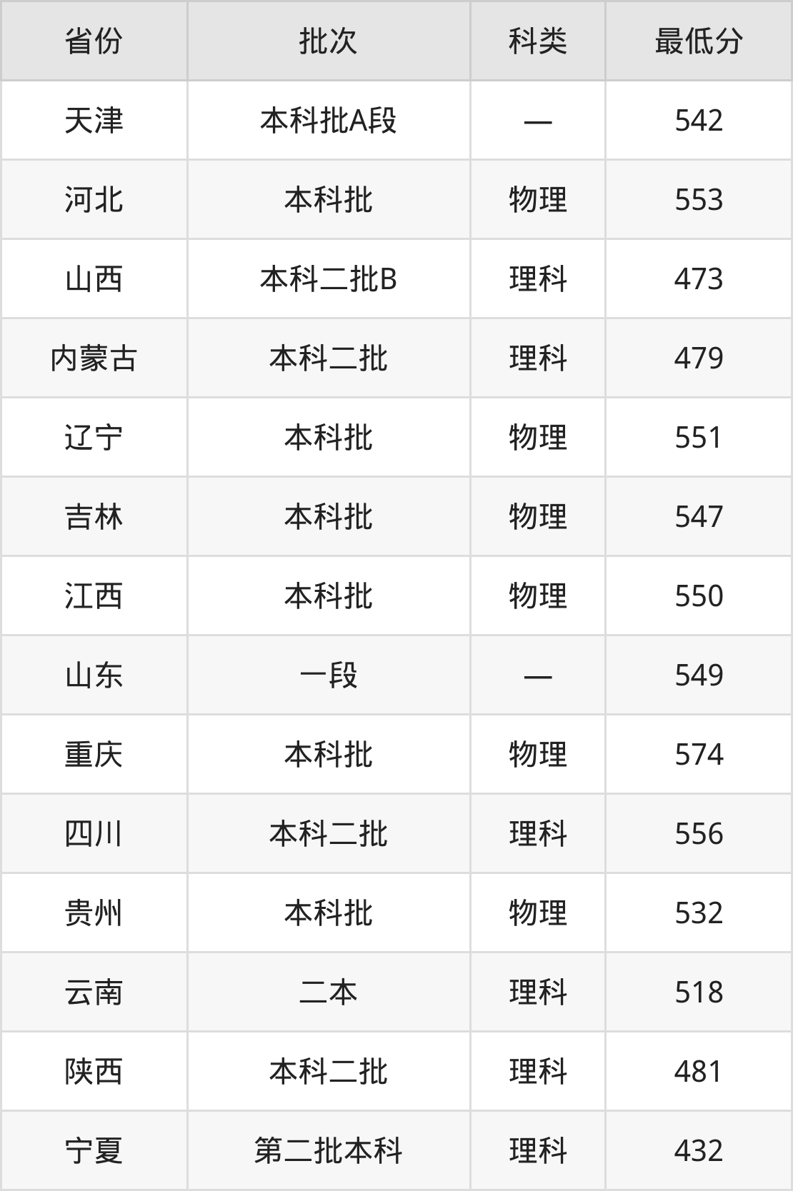 山西:理科最低473分