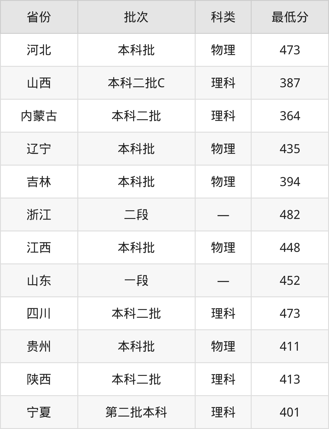 南昌工学院数据科学与大数据技术专业录取分数线从364分到482分不等,在部分地区的最低分数线如下: