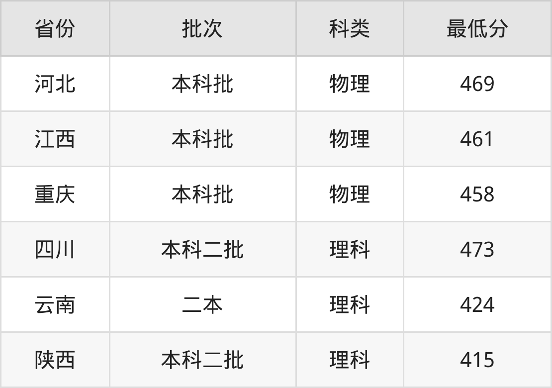 南宁学院物联网工程专业录取分数线从415分到473分不等,最低分数线如下: