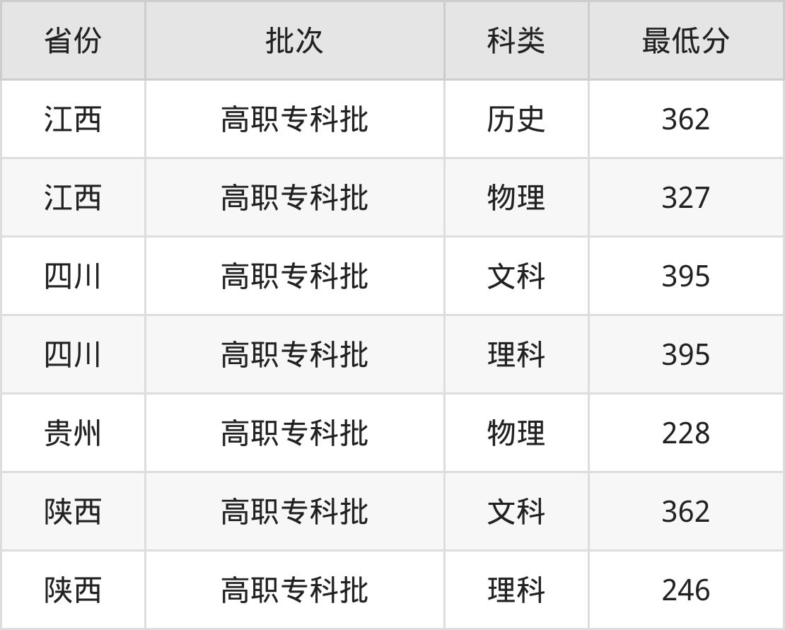 吉安职业技术学院智能产品开发与应用专业在全国各省录取分数线: