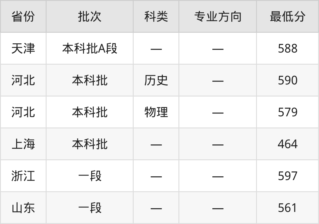 河南财经政法大学金融学类专业在全国各省最低录取分数线为464分(上海),除此之外,在其余地区的最低分为天津588分、河北物理类579分、浙江597分、山东561分,以上数据均为2024年数据,供2025年高考生参考。