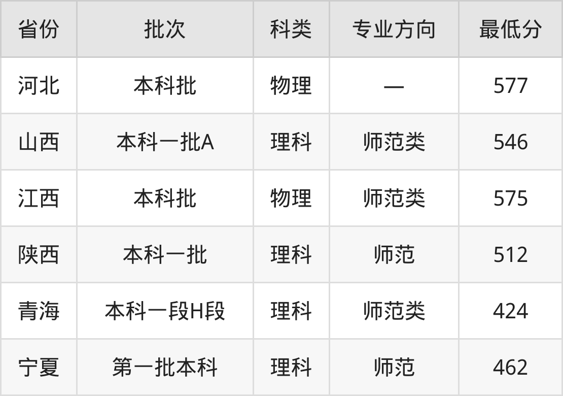 河南大学物理学专业在全国各省最低录取分数线为424分(青海理科),除此之外,在其余地区的最低分为宁夏理科462分、河北物理类577分、山西理科546分、江西物理类575分等,以上数据均为2024年数据,供2025年高考生参考。