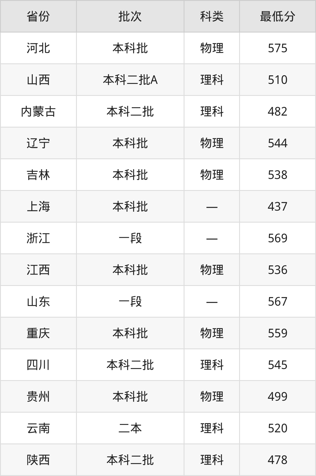 沈阳理工大学智能科学与技术专业录取分数线从437分到575分不等,在部分地区的最低分数线如下: