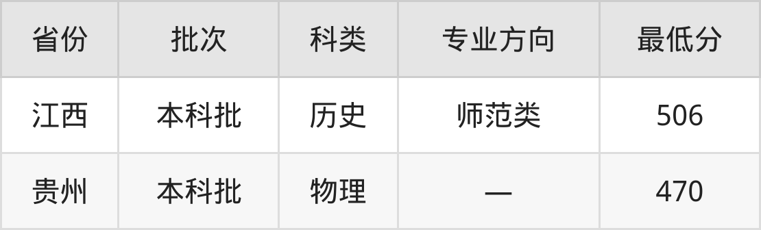 贺州学院小学教育专业在全国各省最低录取分数线为470分(贵州物理类),除此之外,在其余地区的最低分为江西历史类506分,以上数据均为2024年数据,供2025年高考生参考。