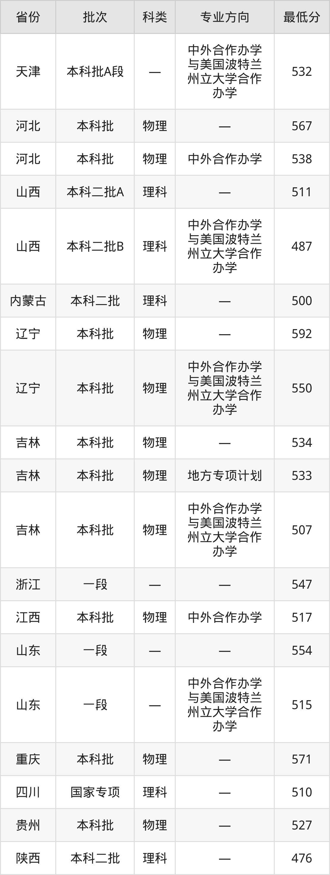 长春工业大学电气工程及其自动化专业录取分数线从476分到592分不等,在部分地区的最低分数线如下: