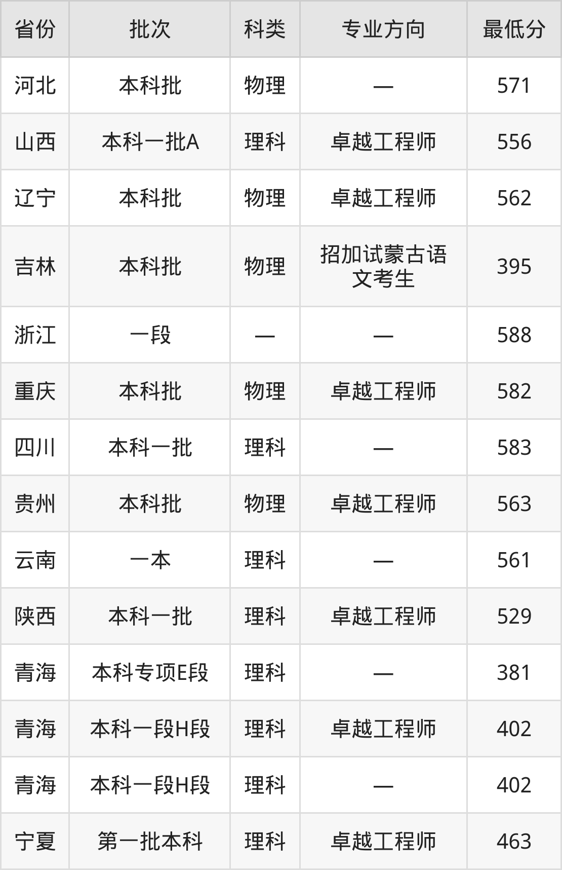 青海大学材料成型及控制工程专业录取分数线从381分到588分不等,在部分地区的最低分数线如下: