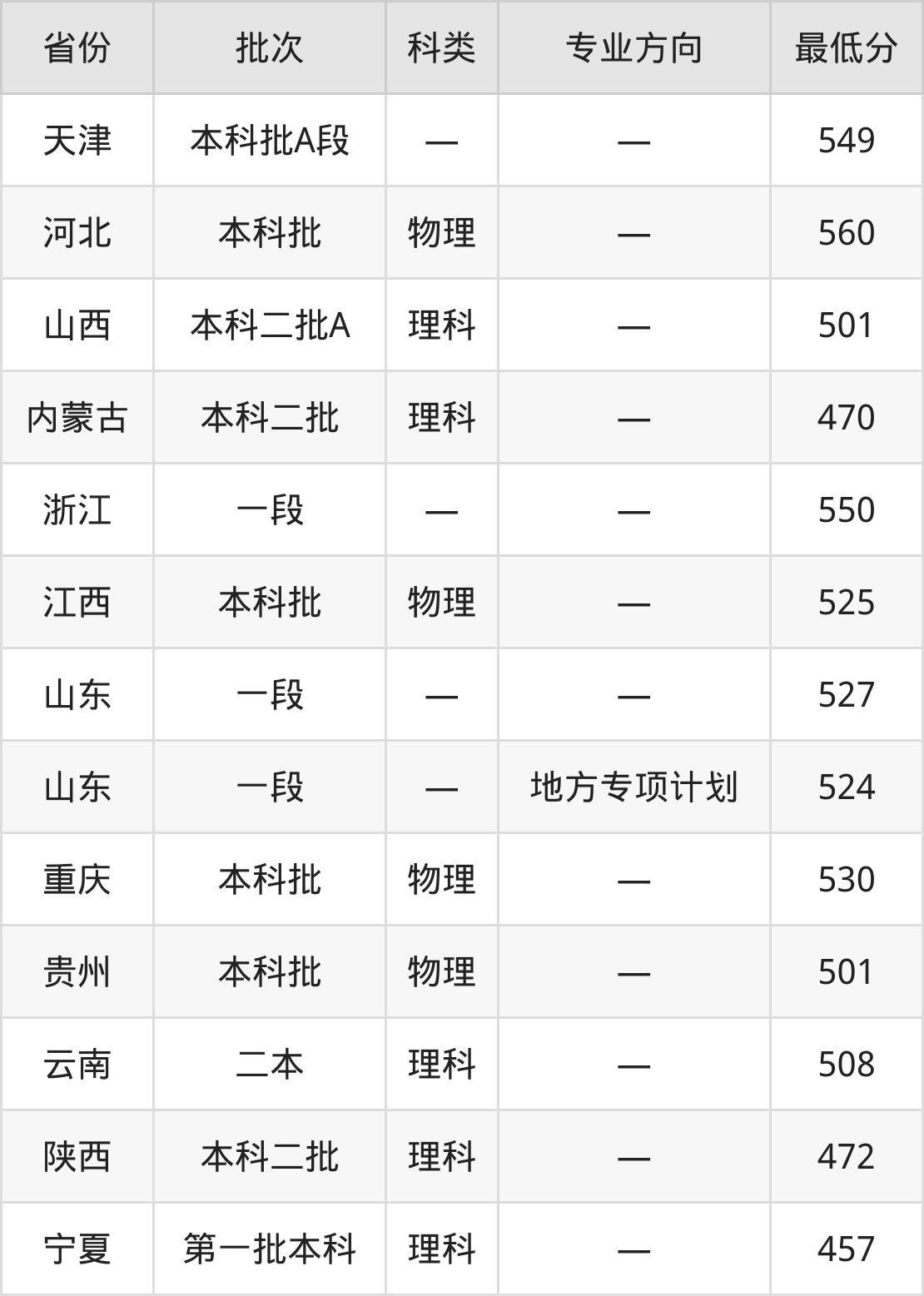 山东理工大学新能源材料与器件专业录取分数线从457分到560分不等,在部分地区的最低分数线如下: