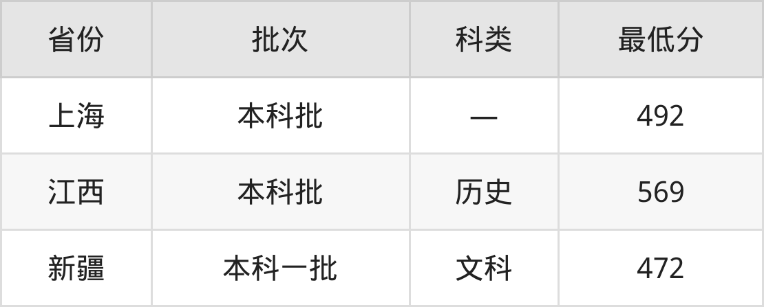南京工业大学历史建筑保护工程专业在全国各省最低录取分数线为472分(新疆文科),除此之外,在其余地区的最低分为上海492分、江西历史类569分,以上数据均为2024年数据,供2025年高考生参考。